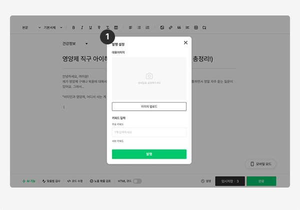 간단 글쓰기 기능을 이용해주세요. - 2내 글이 더 잘 노출되길 바란다면, AI 기능을 이용해 쉽게 글을 쓰고 싶다면