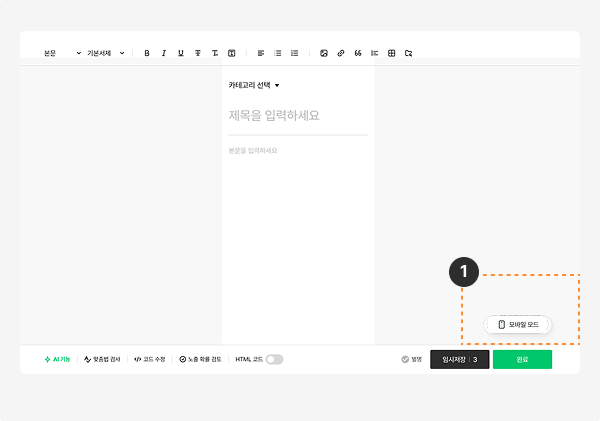 모바일 모드 기능을 이용하여 미리보기를 활용해보세요!