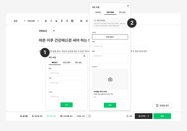 내 글의HTML 구조를 그대로 보고, 직접 수정할 수 있어요.